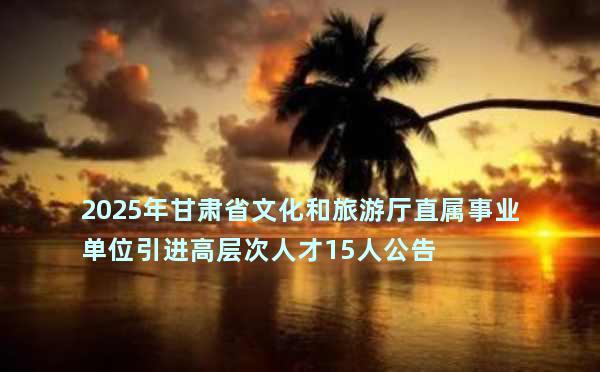以上是《2025年甘肃省文化和旅游厅直属事业单位引进高层次人才15人公告》的全部内容,更多资讯请继续查看:甘肃事业单位考试网(