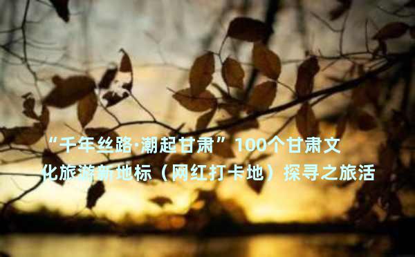 为进一步挖掘甘肃文化旅游资源,打造独具特色的文旅名片,甘肃省文化和旅游厅近期开展“‘千年丝路·潮起甘肃’100个甘肃文化旅游新地标(网红打卡地)探寻之旅”活动,带领大众发现甘肃文化旅游新亮点,解锁甘肃文化旅游新体验。