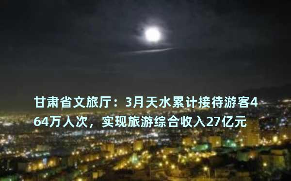 甘肃省文旅厅:3月天水累计接待游客464万人次,实现旅游综合收入27亿元